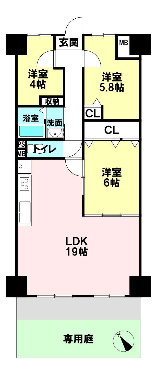 | 主要採光 | 南西向 | バルコニー | |