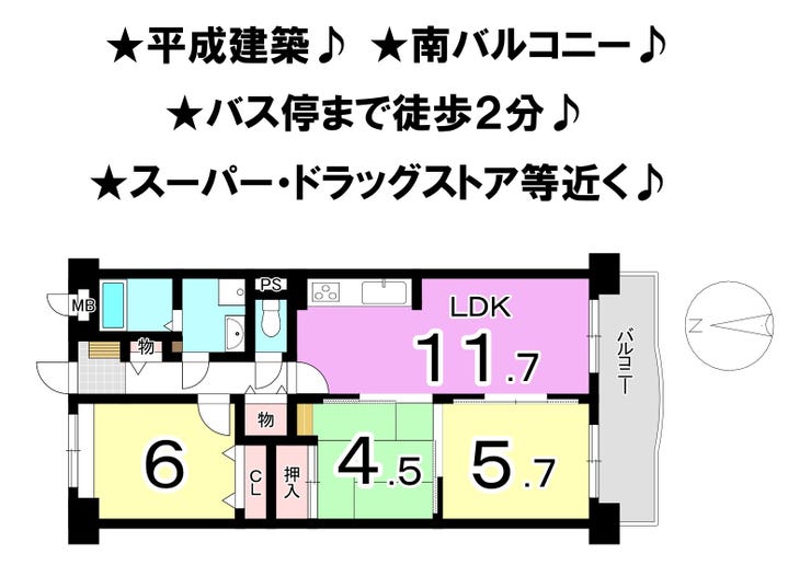 ■平成建築 ■南面バルコニー ■バス停まで徒歩2分 ■スーパー等近く生活便利