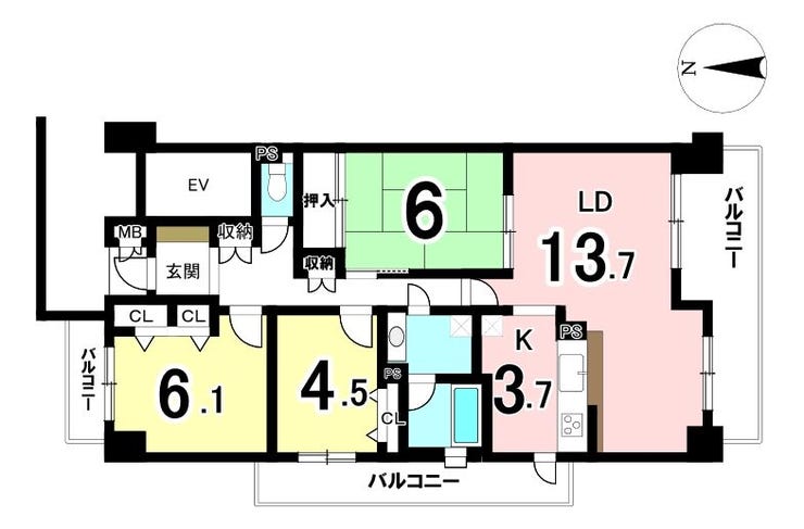 - 3面バルコニー