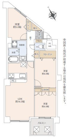 | 専有面積 | 壁芯 69.69㎡ | 所在階 | 6階建/3階部分 |