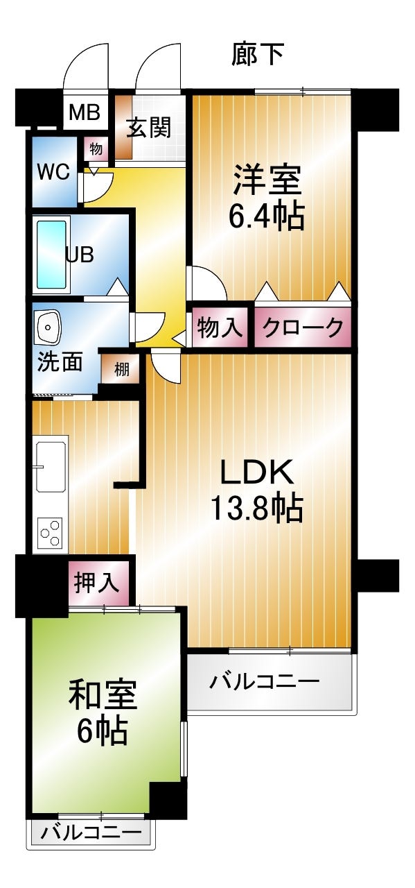 | 専有面積 | 壁芯 60.76㎡ | 所在階 | 6階建/2階部分 |