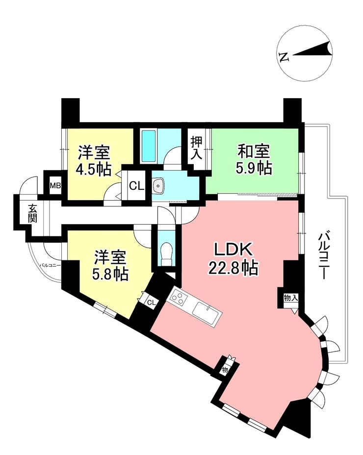 | 主要採光 | 南向 | バルコニー | 北向11.79㎡ |