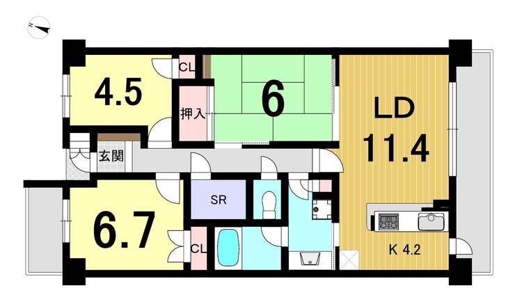 | 主要採光 | 南向 | バルコニー | 南向13.72㎡ |