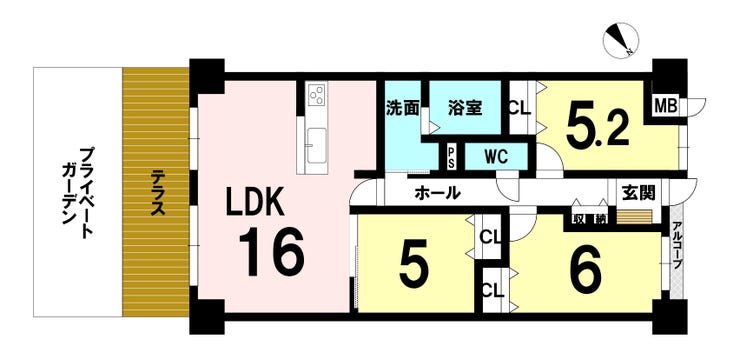 | 主要採光 | 南東向 | バルコニー | |