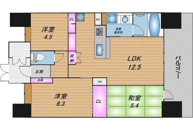 | 専有面積 | 63.84㎡ | 所在階 | 14階建/9階部分 |
