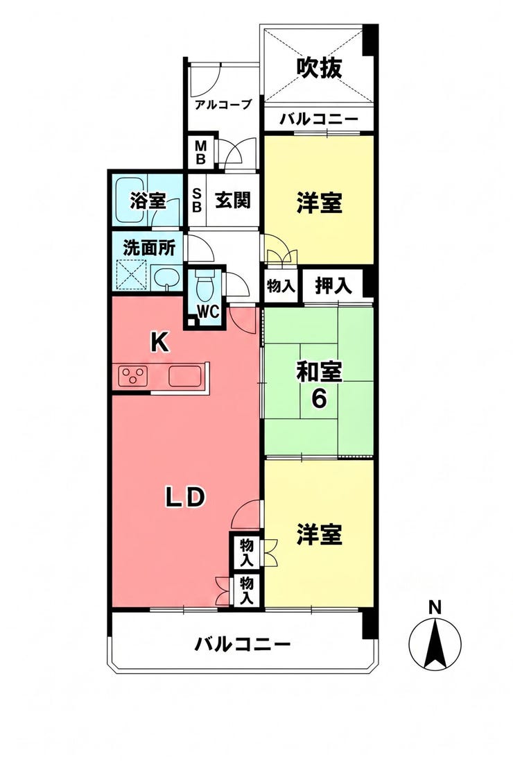- 2面バルコニー