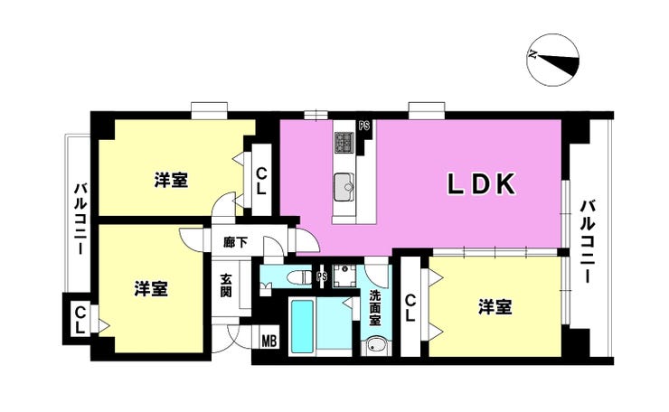 - 2面バルコニー