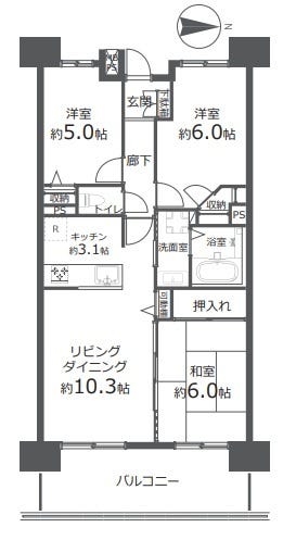 | 専有面積 | 壁芯 65.64㎡ | 所在階 | 14階建/2階部分 |