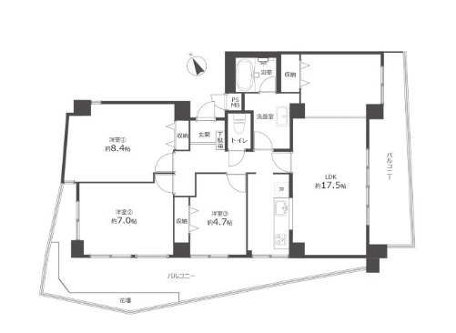 - 2面バルコニー