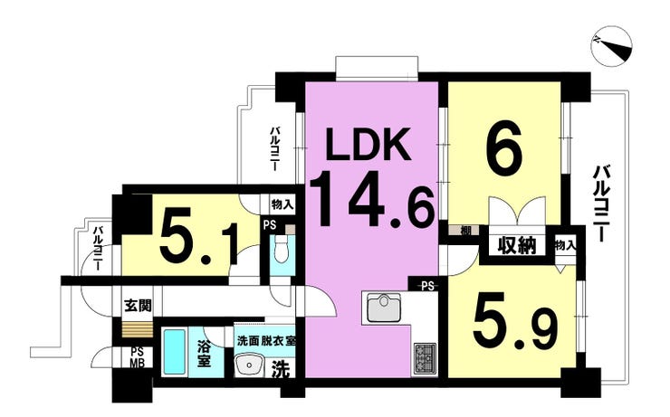 | 主要採光 | 南向 | バルコニー | 南向16.48㎡ |