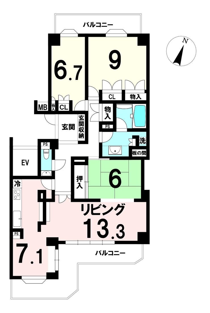 | 専有面積 | 壁芯 110.76㎡ | 所在階 | 7階建/3階部分 |