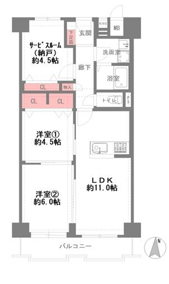 | 主要採光 | 南向 | バルコニー | 南向6.36㎡ |