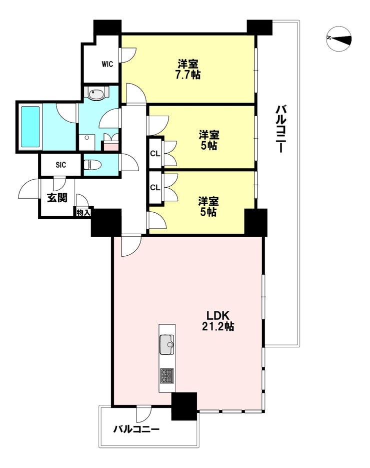 | 主要採光 | バルコニー | 南向21.64㎡ | |