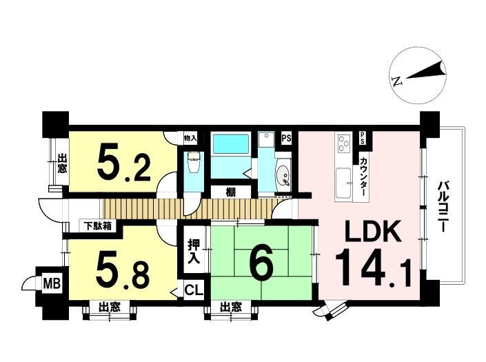 | 主要採光 | 南向 | バルコニー | 南向7.93㎡ |