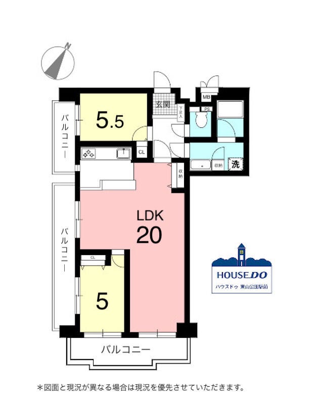 - 2面バルコニー
