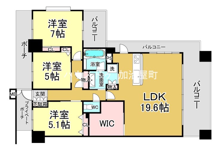 | 主要採光 | 南西向 | バルコニー | 南西向33.89㎡ |