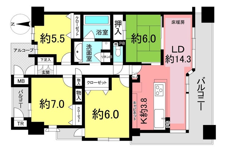 | 備考 | ●和室あり! ●ラウンドバルコニー!2面採光で日当たり良好! ●角部屋! ●録画機能あり、モニタインターホン ●床暖房 |