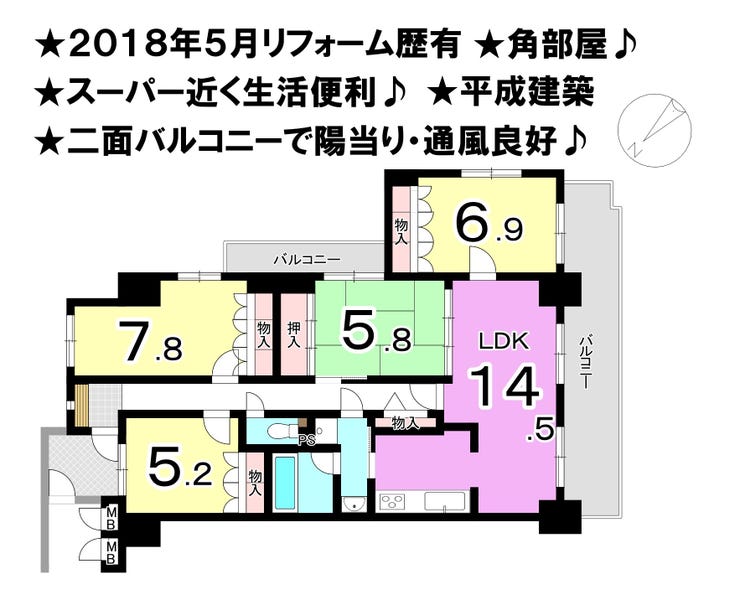 ■平成建築 ■室内リフォーム歴有 ■南西角部屋 ■二面バルコニー ■スーパー・コンビニ近く