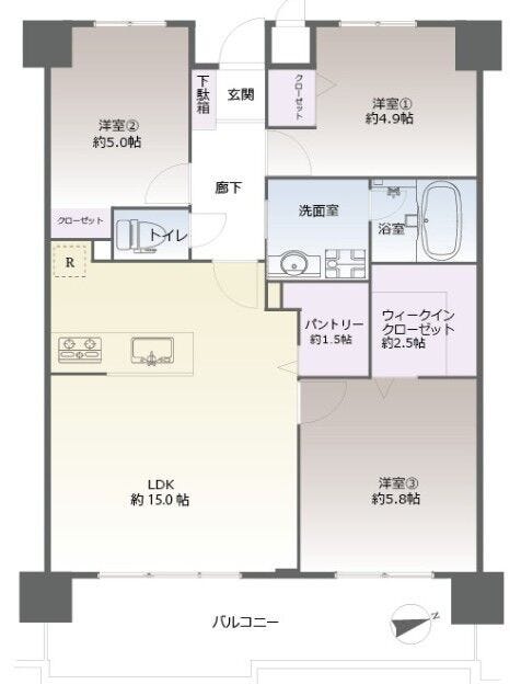 | 主要採光 | 東向 | バルコニー | |
