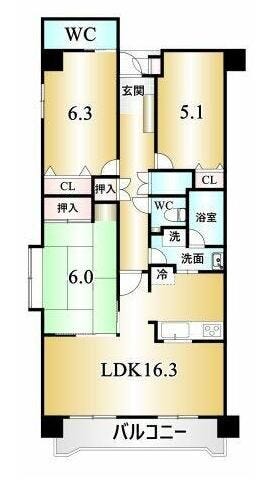| 主要採光 | 南西向 | バルコニー | 9.51㎡ |