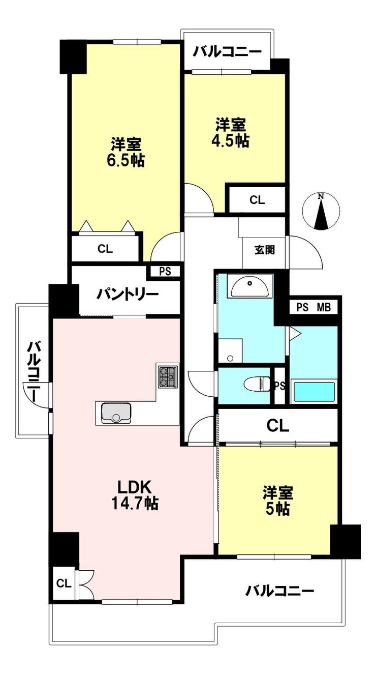 | 専有面積 | 壁芯 77.39㎡ | 所在階 | 14階建/9階部分 |