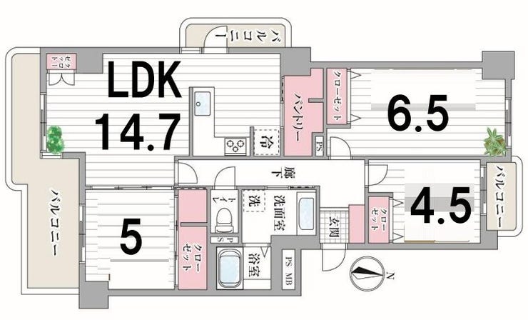 - 3面バルコニー