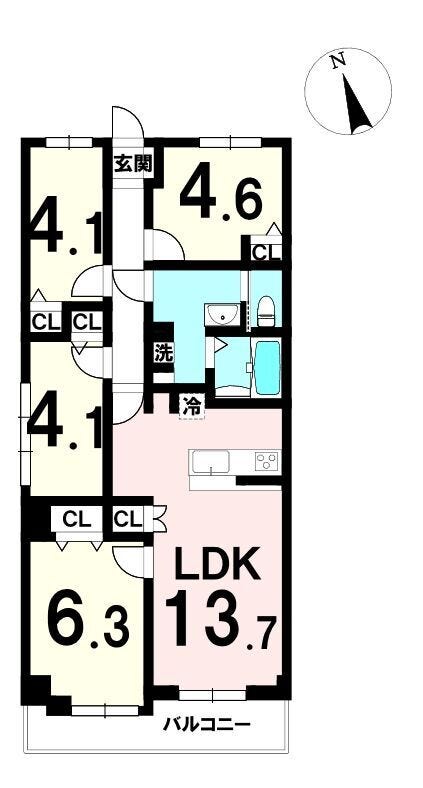| 主要採光 | 南向 | バルコニー | 南向6.37㎡ |