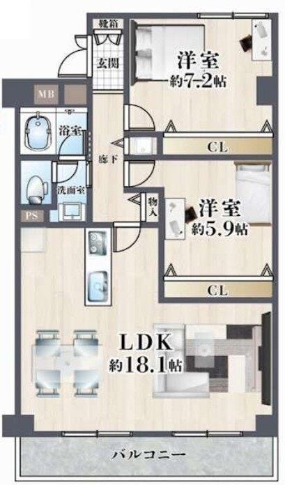 | 専有面積 | 壁芯 67.61㎡ | 所在階 | 8階建/5階部分 |