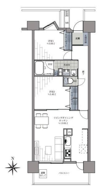 | 専有面積 | 壁芯 55.90㎡ | 所在階 | 13階建/9階部分 |