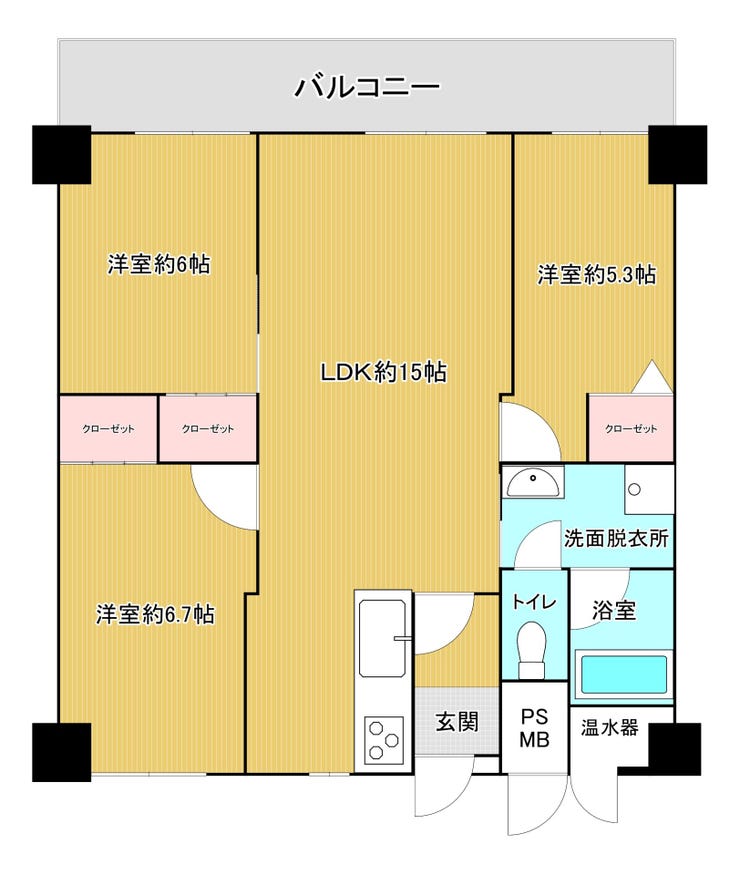 | 主要採光 | 南向 | バルコニー | 南向15.00㎡ |