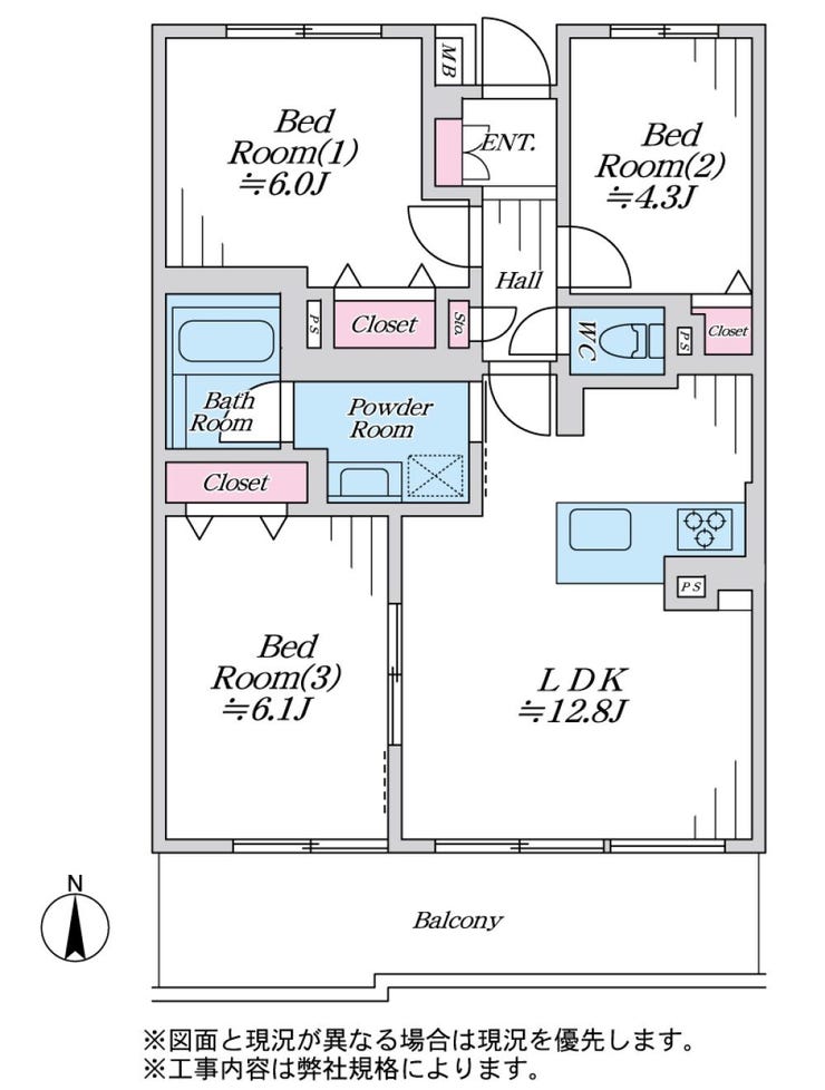| 専有面積 | 壁芯 63.01㎡ | 所在階 | 5階建/2階部分 |