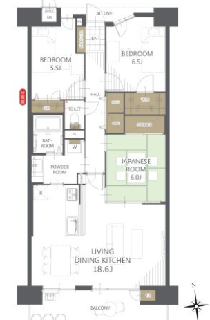 | 主要採光 | 南向 | バルコニー | 南向11.08㎡ |