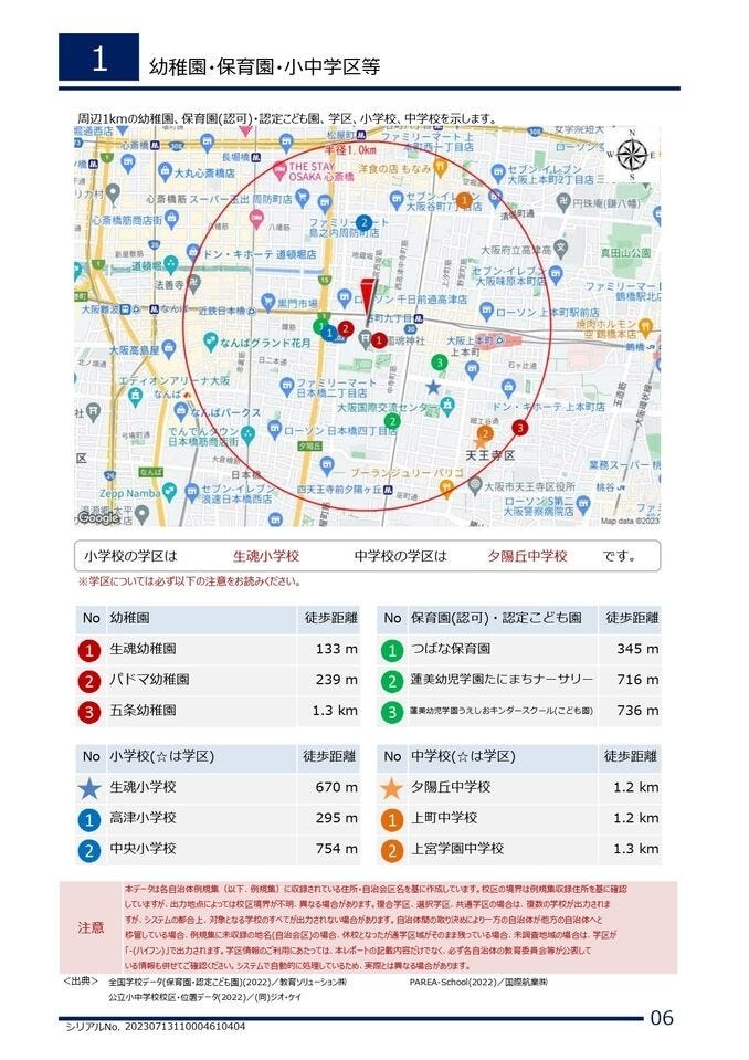 | 小学区 | 生魂小学校 徒歩9分 (約720m) | 中学区 | 夕陽丘中学校 徒歩15分 (約1200m) |