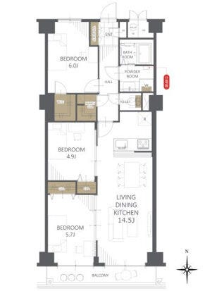 | 主要採光 | 南向 | バルコニー | 南向6.72㎡ |