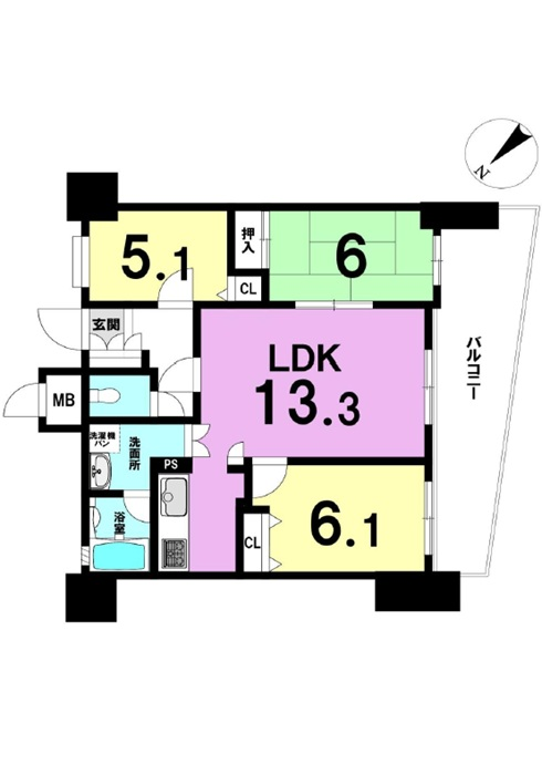 | 専有面積 | 壁芯 65.58㎡ | 所在階 | 13階建/4階部分 |