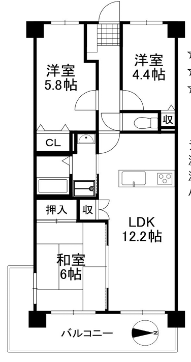 | 主要採光 | 東向 | バルコニー | 東向12.13㎡ |