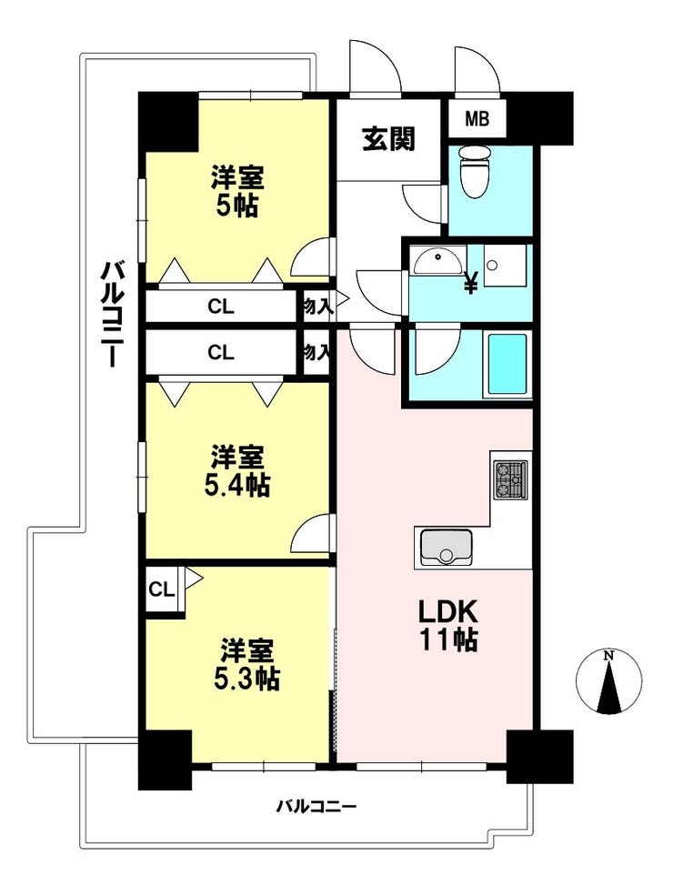 | 主要採光 | バルコニー | 南向9.00㎡ | |