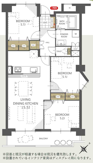 広々バルコニーから余すことなく太陽光が差し込みます。