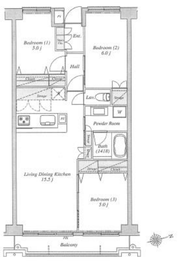 | 専有面積 | 69.96㎡ | 所在階 | 6階建/4階部分 |