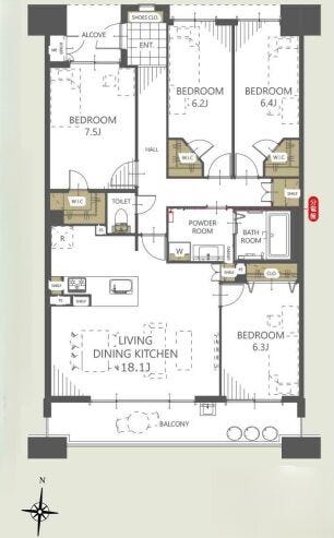 | 専有面積 | 壁芯 101.44㎡ | 所在階 | 15階建/5階部分 |
