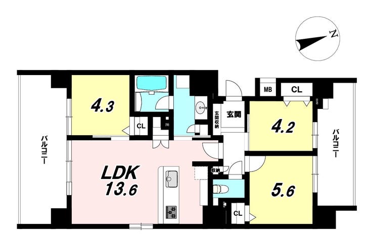 | 主要採光 | 南向 | バルコニー | 南向14.09㎡ |
