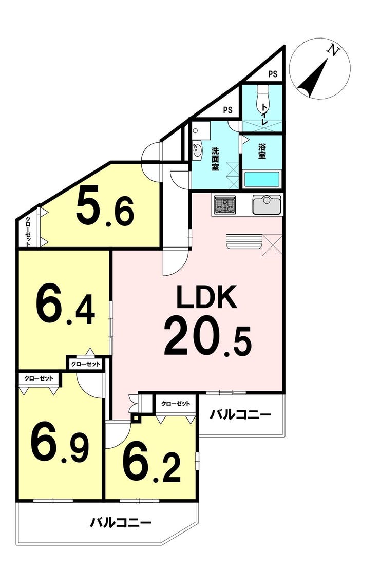 - 2面バルコニー