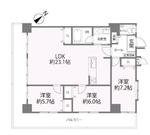 - 2面バルコニー