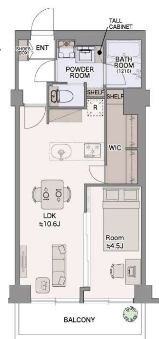 専有部分は40.13㎡の1LDK+WIC。