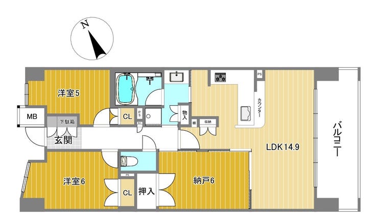 | 専有面積 | 壁芯 70.01㎡ | 所在階 | 15階建/4階部分 |