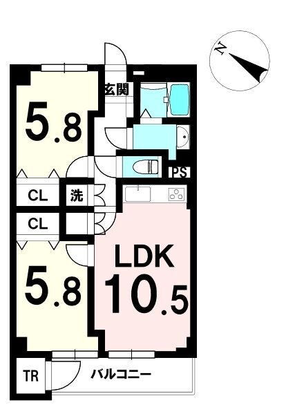 | 専有面積 | 壁芯 56.43㎡ | 所在階 | 8階建/5階部分 |