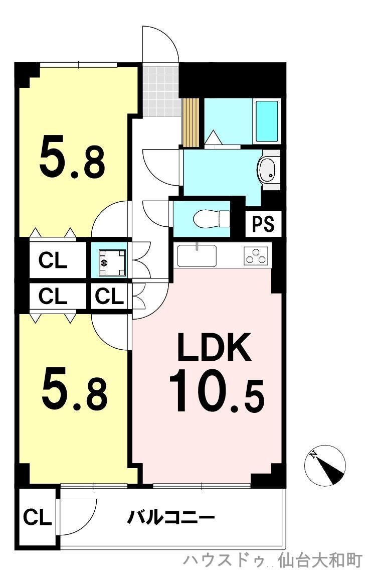 | 周辺環境 | 仙台市立古城小学校 徒歩5分 (約370m) ヨークベニマル若林店 徒歩8分 (約640m) セブンイレブン仙台若林3丁目店 徒歩6分 (約480m) |