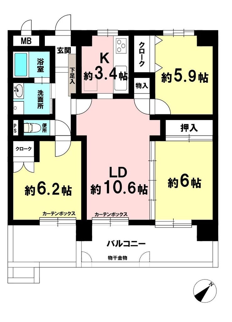 | 主要採光 | 南東向 | バルコニー | |