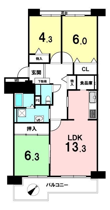 | 備考 | ・エレベーター停止階 ・ペット飼育可 ・間取り変更(北側和室→洋室) ・各居室に収納あり |