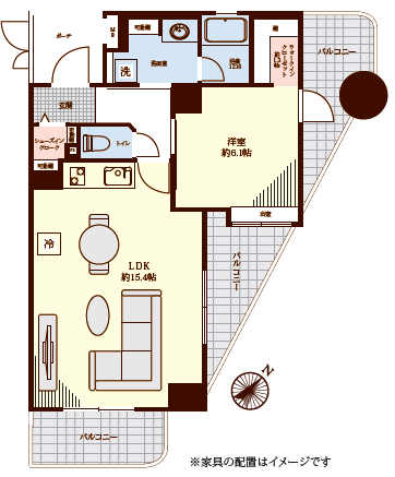 | 主要採光 | 南東向 | バルコニー | 南東向15.40㎡ |